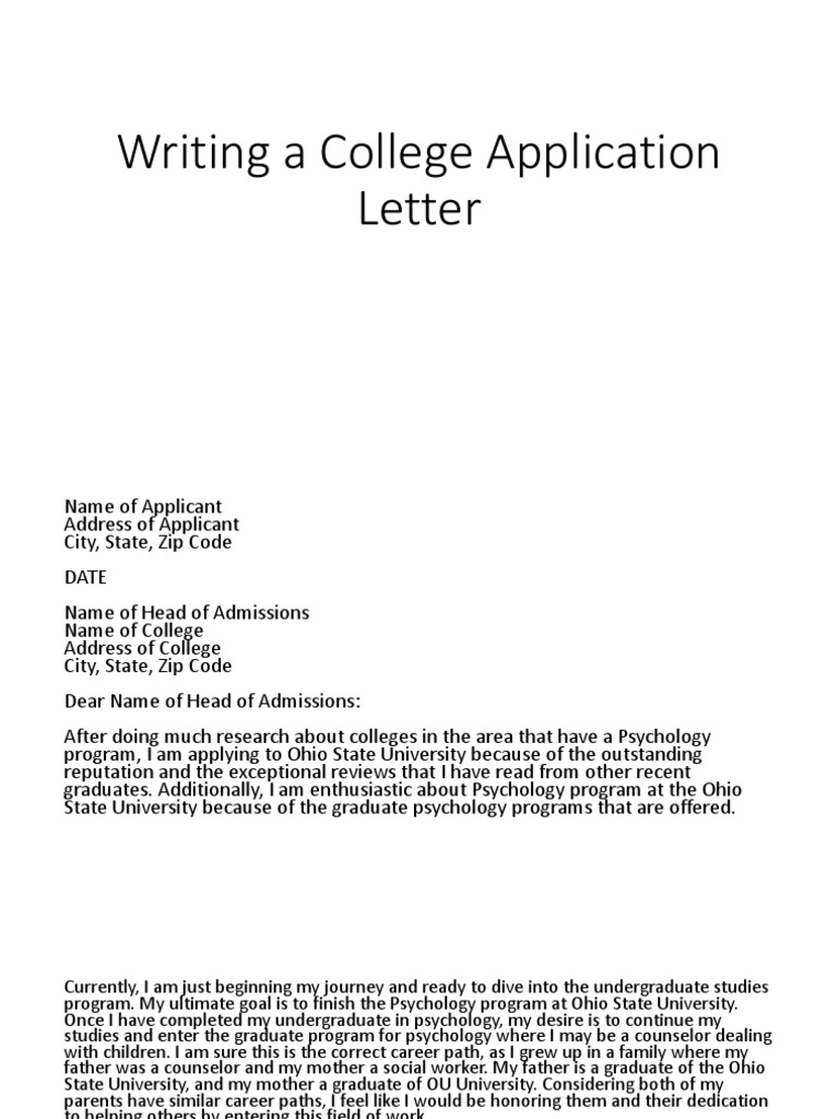 The language should be simple and easy to understand. College application cover letter sample name of applicant address of applicant Make sure your writings are accurate & free from plagiarism. What are the contents of an application letter? However, there are some guidelines for any college application letter.